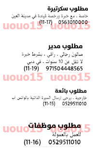 وظائف اليوم في الامارات العين.