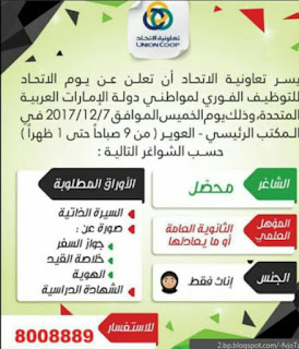 وظائف شاغرة في الامارات بتاريخ اليوم 27 نوفمبر 2017.