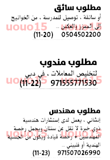 وظائف الامارات بتاريخ اليوم.
