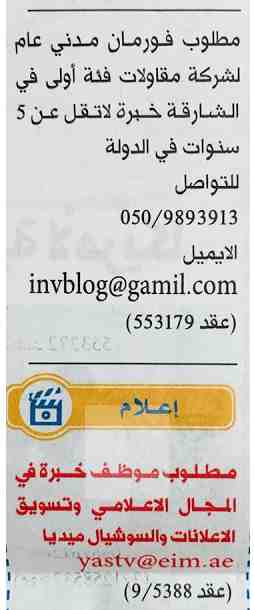 وظائف الخليج الاماراتي.