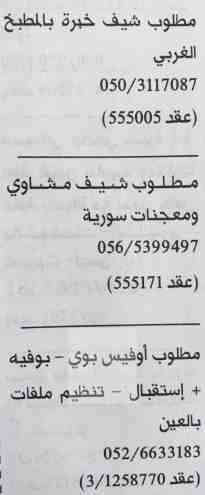 مطلوب معلم معجنات سوري للعمل في الشارقة.