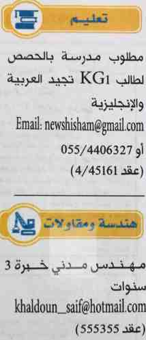 وظائف معلمين جريدة الخليج.