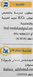 وظائف على جريدة الخليج 13 اكتوبر 2018.