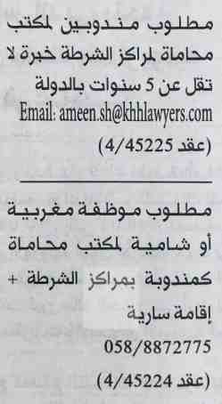 وظائف جريدة الخليج الاماراتية ليوم الجمعة.