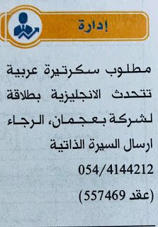 مطلوب محاسبة عربية لديها خبرة بالحسابات.