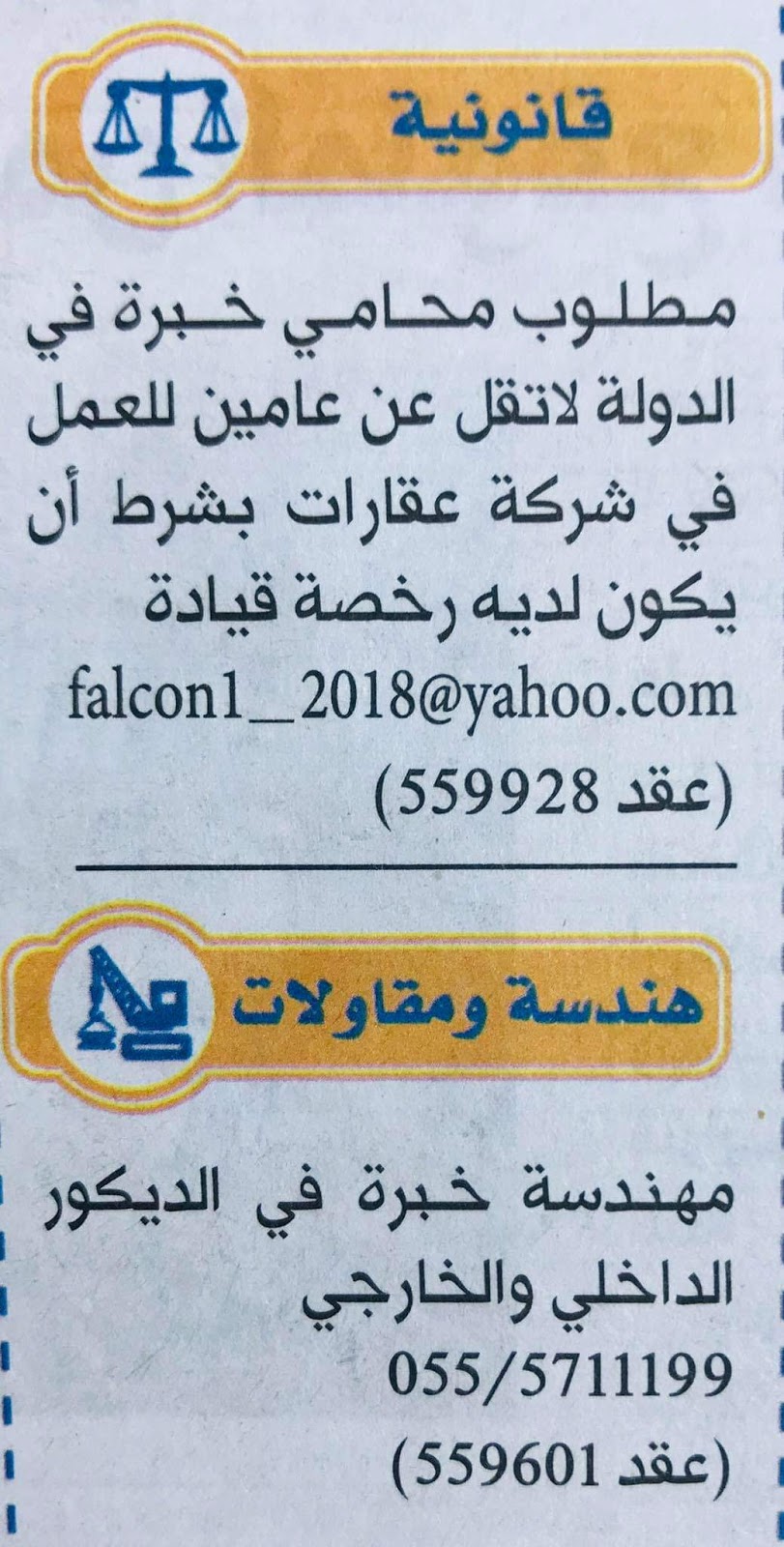 وظائف جريدة الخليج للوظائف ١٥/٤/٢٠١٩.