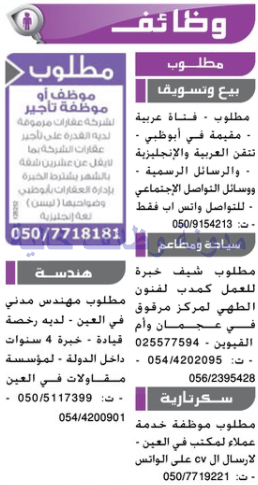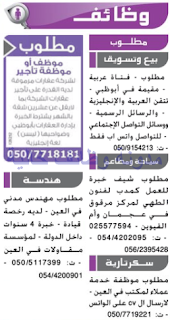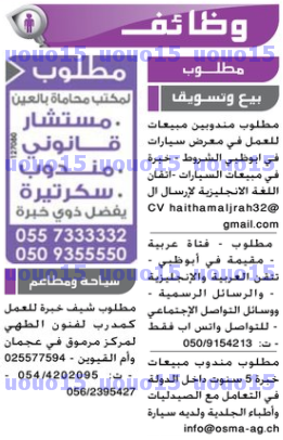 وظائف جريدة دليل الاتحاد الاماراتية 2/10/2017