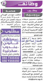 مطلوب مندوبين مبيعات للعمل في معرض سيارات في ابوظبي.