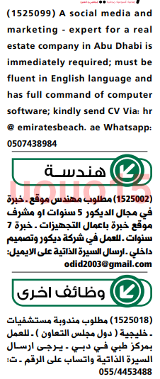 وظائف الامارات اليوم.