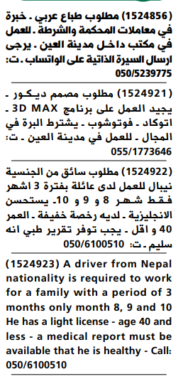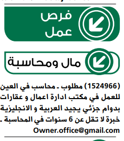 مطلوب سكرتيرة للعمل في العين.