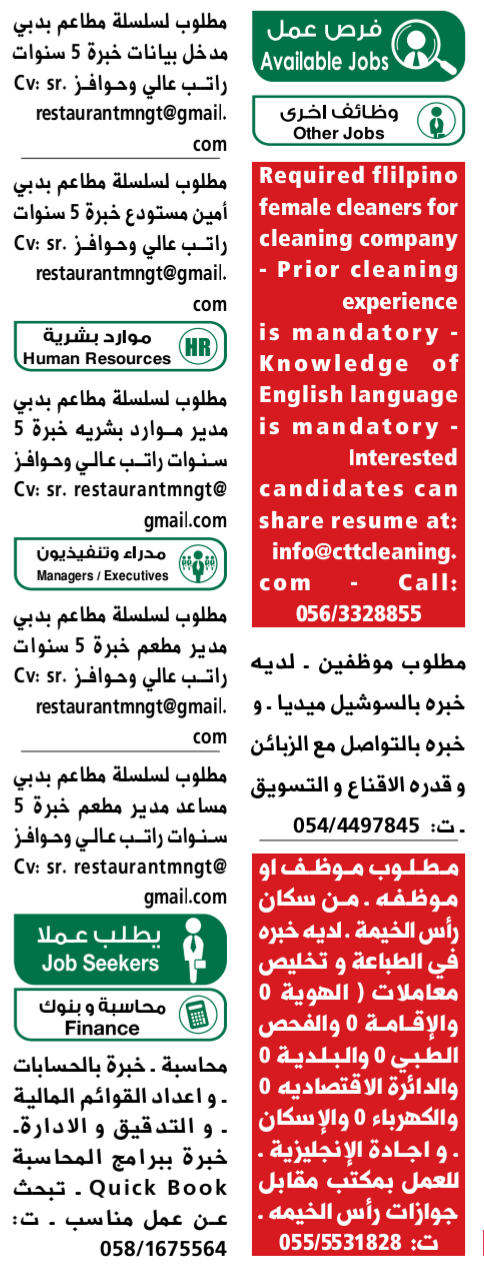 مجال التوظيف الإعلان في الإمارات.