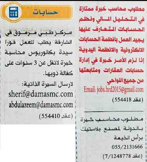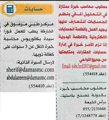 وظائف للمحاسبين في الامارات 13/9/2018