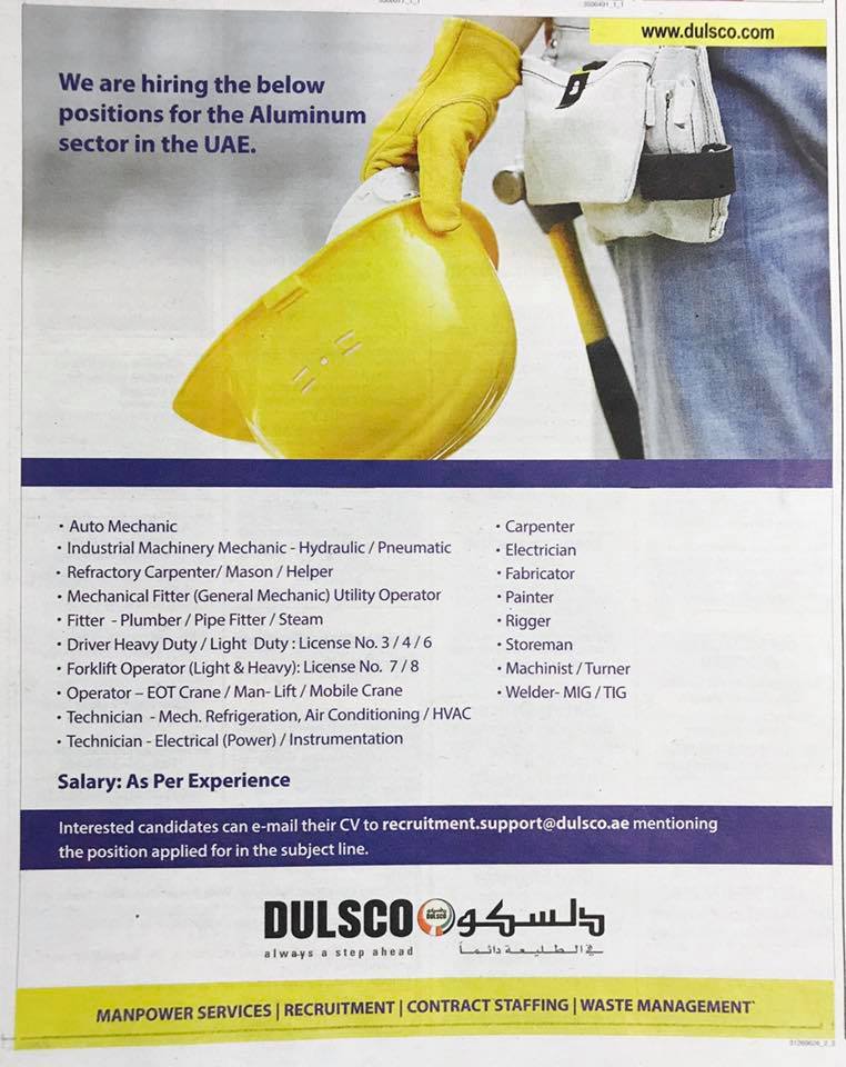 وظيفة بمحموعة مقاولات بدبا الفجيرة.