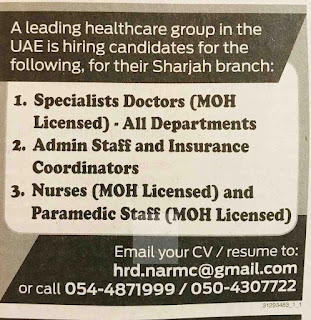 مطلوب ممرضة للعمل في مجموعة طبية اماراتية.