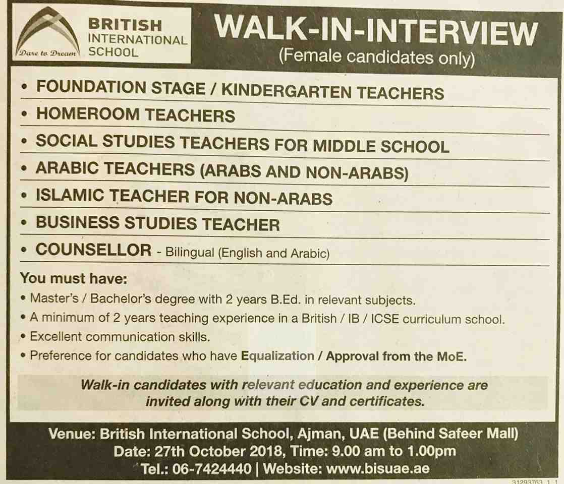 وظائف للمدرسين والمدرسات في ابوظبي.