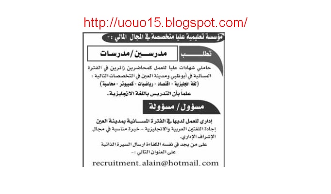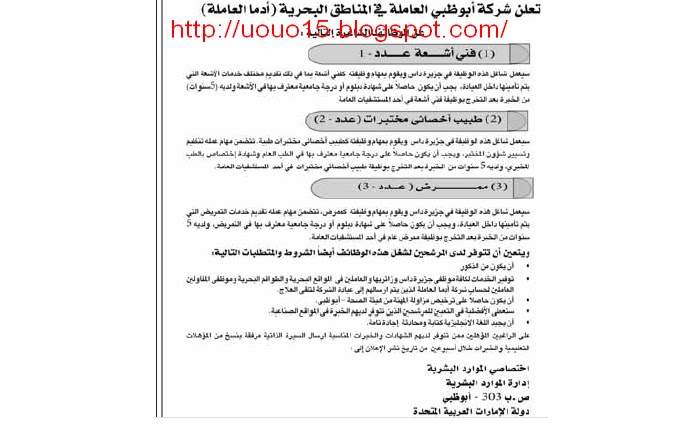 مدونة وظائف الامارات مدونة إعلانية مجانية متخصصة في نشر اعلانات الوظائف ولا تقوم بأي عمل تجاري أو وساطة بين المعلن والباحث عن الوظائف.