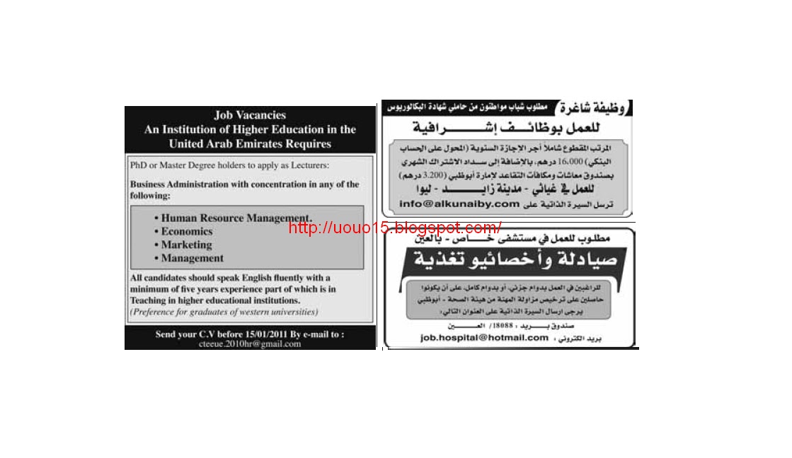 مدونة وظائف الامارات مدونة إعلانية مجانية متخصصة في نشر اعلانات الوظائف ولا تقوم بأي عمل تجاري أو وساطة بين المعلن والباحث عن الوظائف.