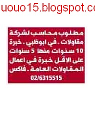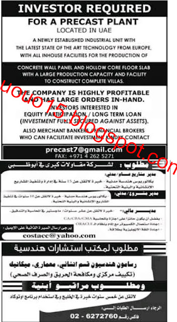 مطلوب لشركه مقاولات كبرى فى ابوظبى