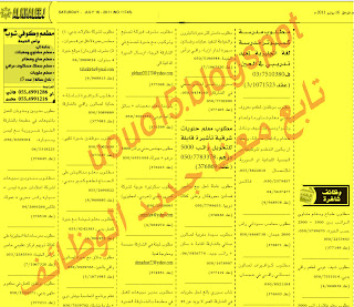 وظائف جريده الخليج - 16 يوليو 2011