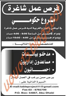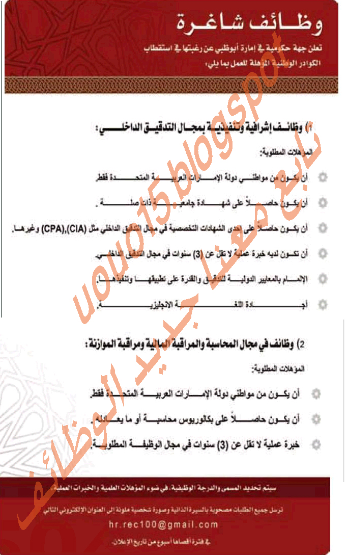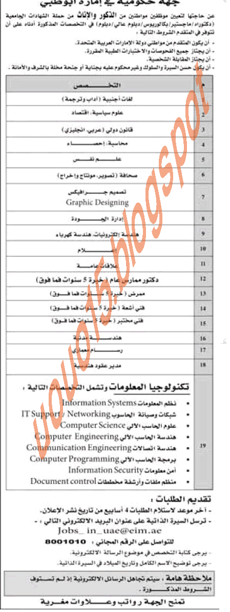 وظائف حكوميه فى ابوظبى