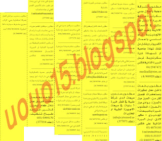 والاعلان المنشور على مسؤولية المعلن فقط. ولذلك ننبه زائري المدونة عدم دفع أي مبالغ مالية للمعلن قبل التأكد من أنه حائز على التراخيص القانونية المعتمدة في الدولة.