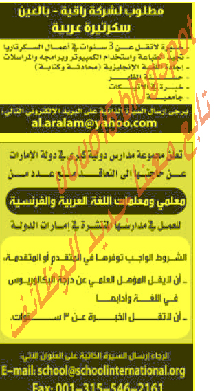 مطلوب سكرتيره للعمل فى العين