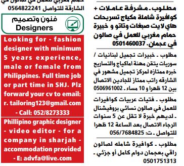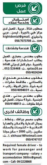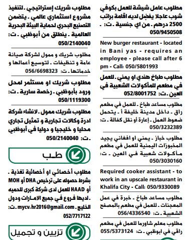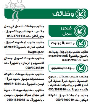 وظائف شاغرة من جريدة الخليج الاماراتية اليوم السبت ٢٩ ابريل ٢٠١٧.