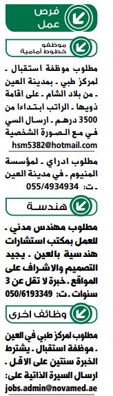 وظائف جريدة الوسيط العين اليوم 29 ابريل 2017.