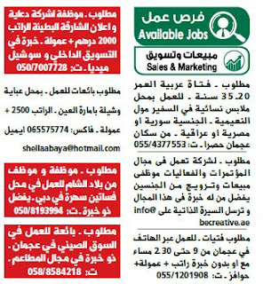 من وظائف جريدة الاتحاد الاماراتية اليوم 3/5/2017.
