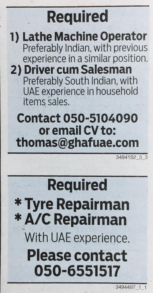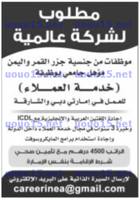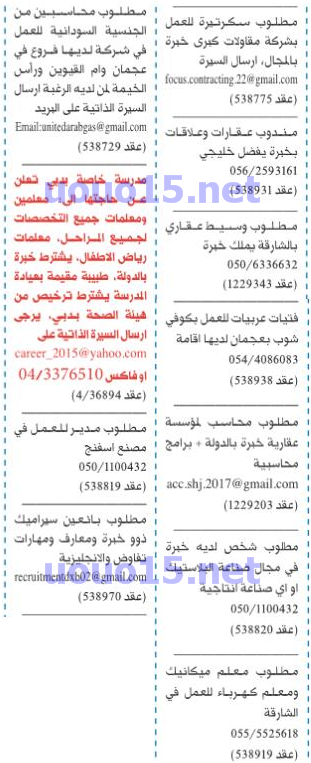وظائف شاغرة في الصحف الاماراتية 17/5/2017