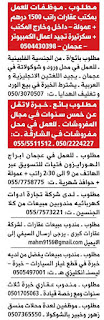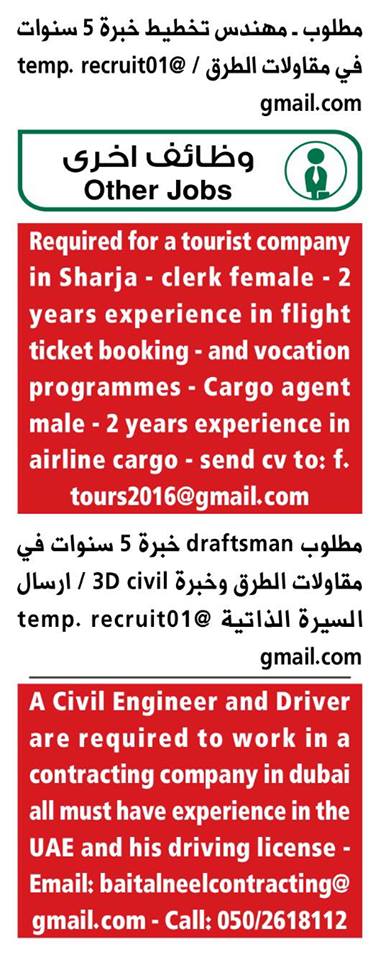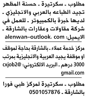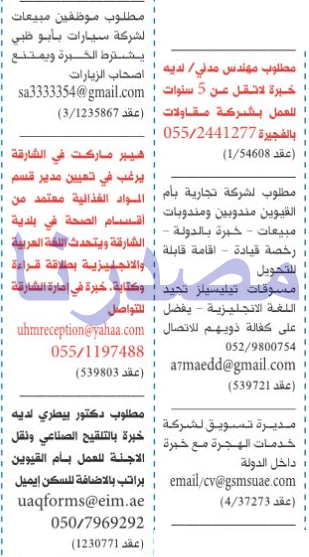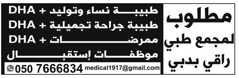 وظائف الخليج الاماراتية ليوم الخميس.