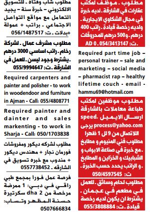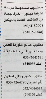 وظائف في ابوظبي والشارقة.
