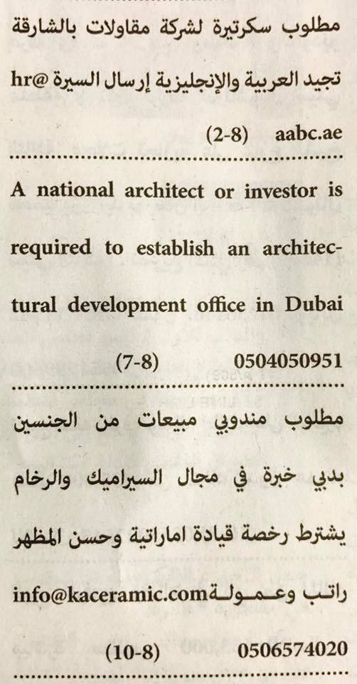 وظائف في الإمارات.