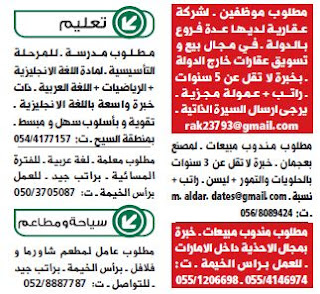 وظائف وسيط رأس الخيمة 12 أغسطس 2017.