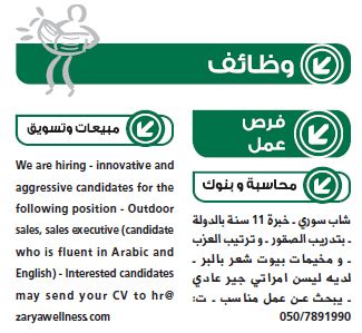 مطلوب بائعات من بلاد الشام او مصر للعمل في عجمان.