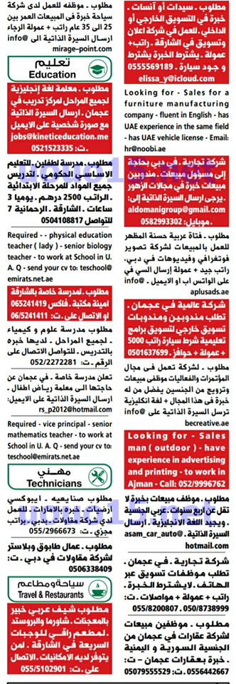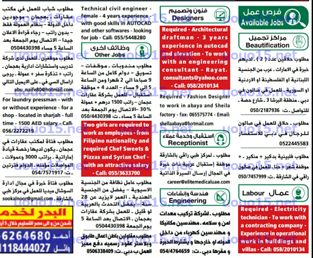 وظائف شاغرة من جريدة الوسيط راس الخيمة الاماراتية اليوم السبت ٢٣ سبتمبر ٢٠١٧.