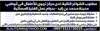 شاهد الوسيط ابوظبي وظائف pdf اليوم 23/9/2017 من هنا.