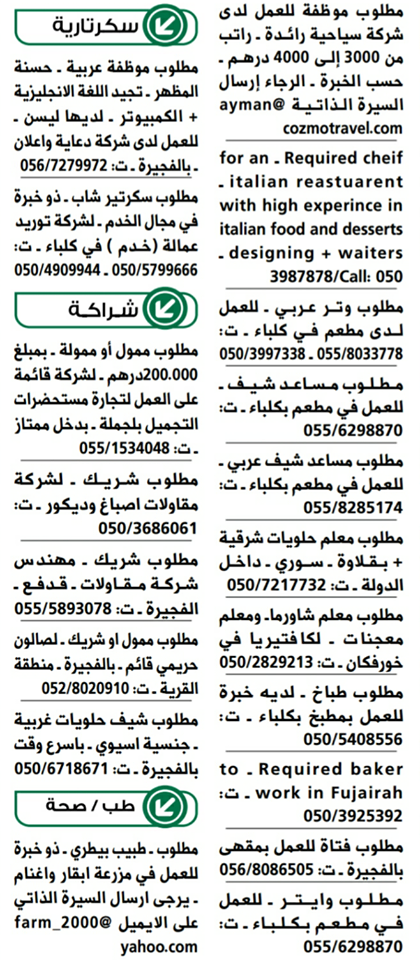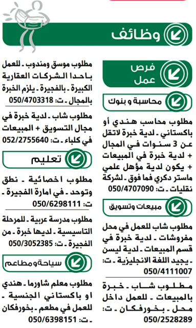 وظائف جريدة الوسيط الفجيرة 23/9/2017