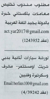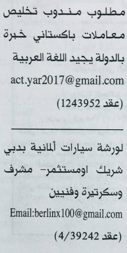 وظائف جريدة الخليج الاماراتية 16 اكتوبر 2017.