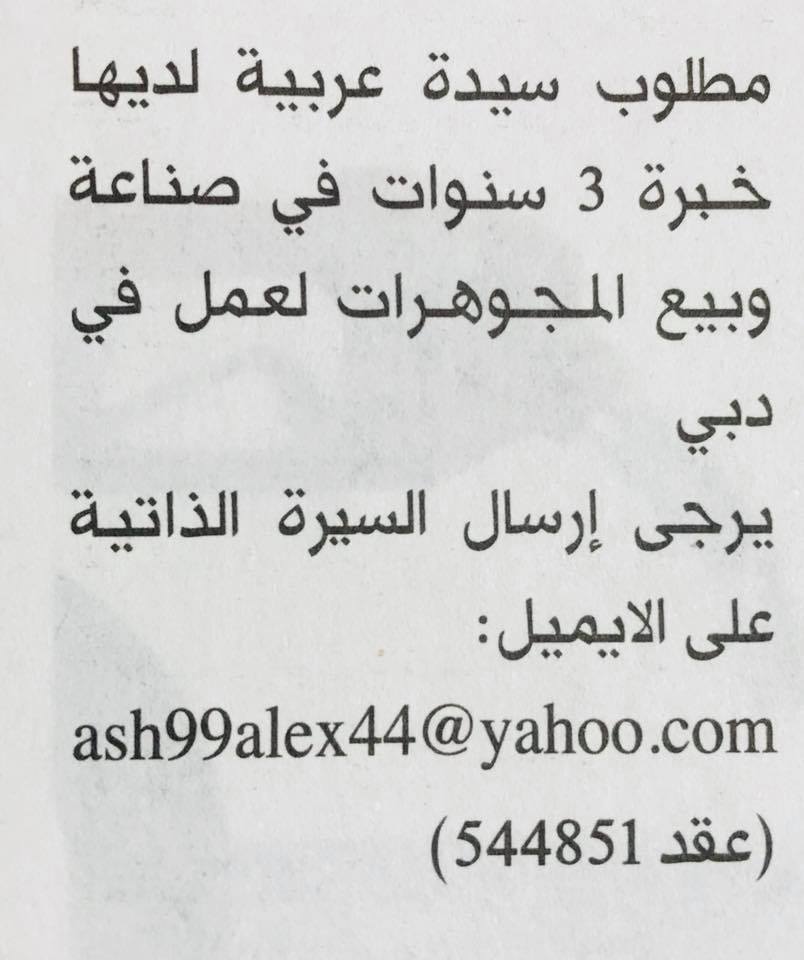مطلوب بائعون وبائعات للعمل في الامارات.