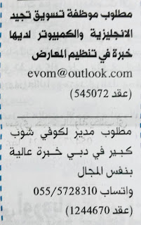 مدونة وظائف الامارات مدونة إعلانية مجانية متخصصة في نشر اعلانات الوظائف ولا تقوم بأي عمل تجاري أو وساطة بين المعلن والباحث عن الوظائف.