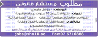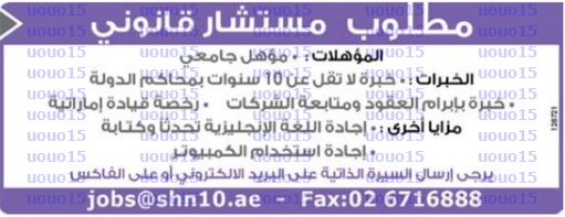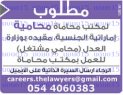 مطلوب محامية اماراتية الجنسية.