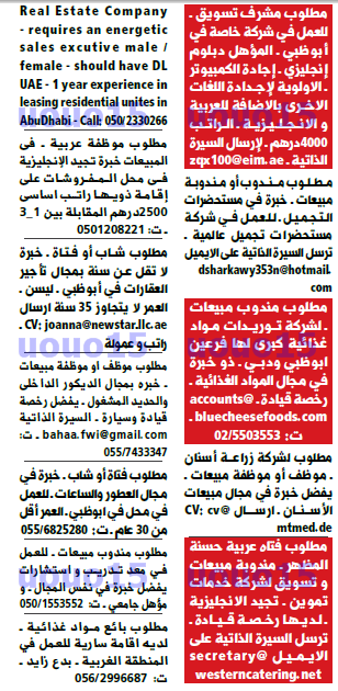 وظائف جريدة دليل الاتحاد الاماراتية 19/11/2017
