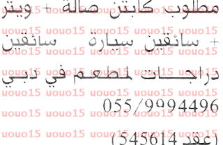وظائف كايتن صالة وويتر وسائقين في الامارات