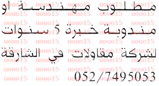 وظائف للمهندسين في الشارقة وعجمان.
