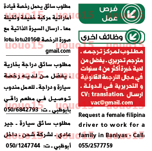 وظائف للسائقين في الامارات.