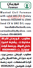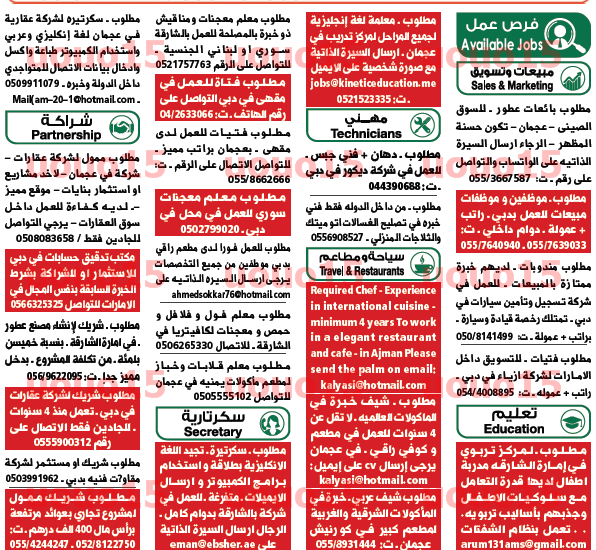 مطلوب جميع التخصصات للعمل في دبي.