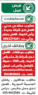 وظائف شاغرة في راس الخيمة الوسيط 30 ديسمبر 2017.