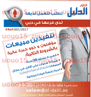 وظائف جريدة دليل الاتحاد الاماراتية 30/12/2017
