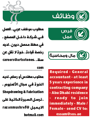 وظائف الخليج الاماراتية ليوم الجمعة.